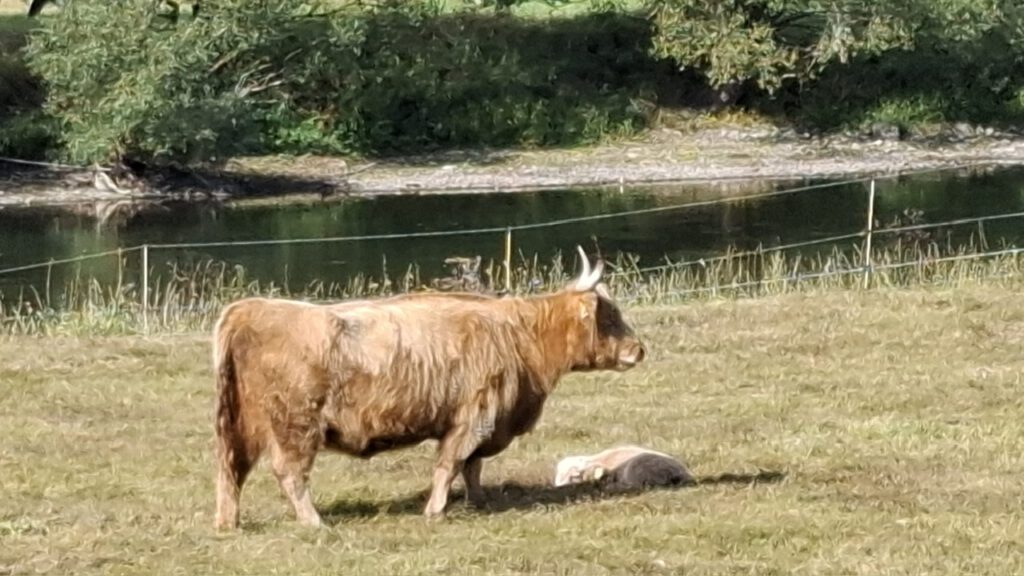 Gegen Mittag konnten wir dann regenfrei weiter fahren. Auf unserem Weg konnten wir das zweite frischgeborene Kalb unserer Tour bewundern.