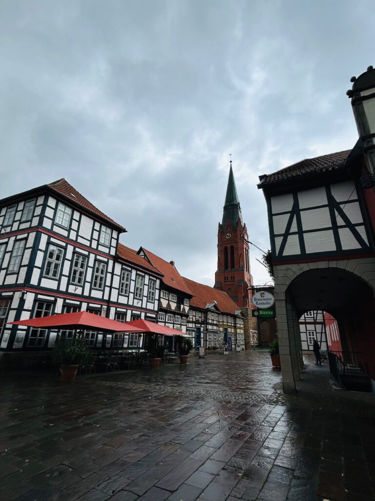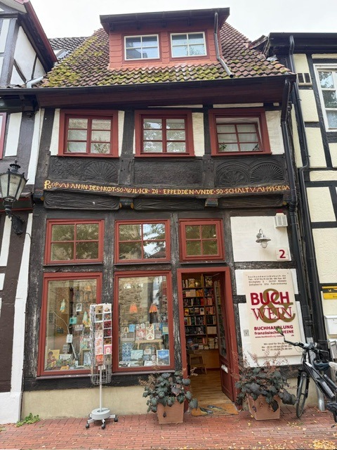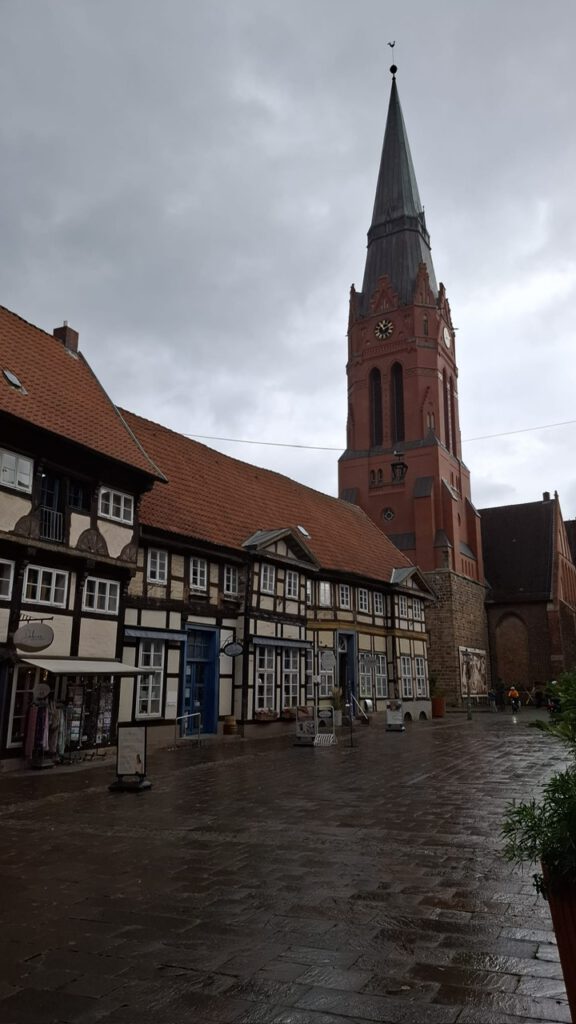 Um den durchziehenden Regenfronten auszuweichen, fuhren wir zunächst auf dem schnellsten Weg nach Nienburg. Dort hatten wir noch etwas Zeit für Besichtigungen, bevor wir vor dem Regen in eine Bäckerei in der Innenstadt flüchteten.