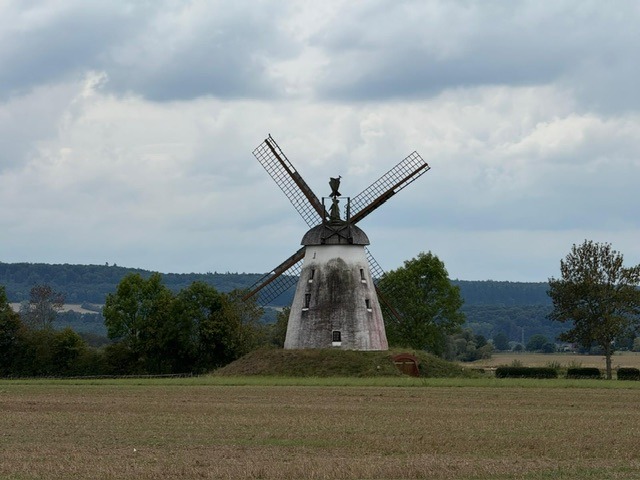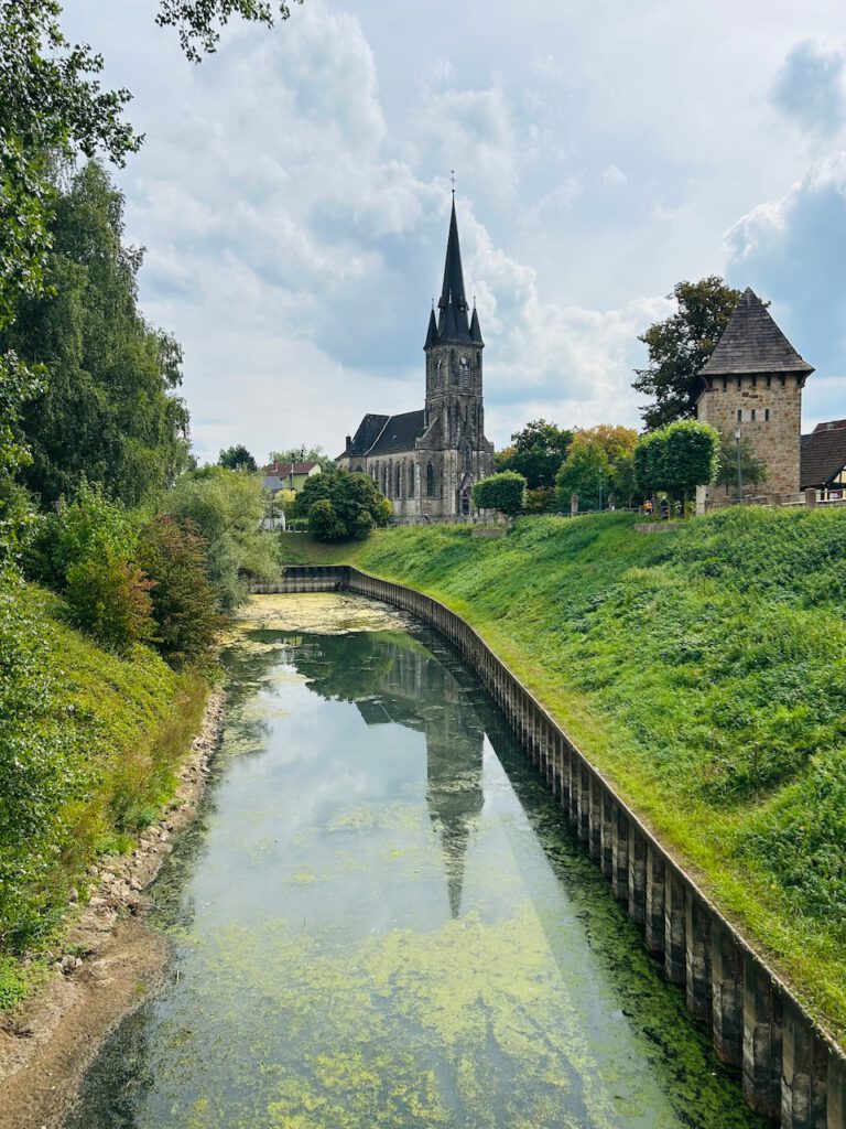 Heute morgen starteten wir bei bewölktem Himmel und mit der Chance auf Regen. Durch die Altstadt von Hameln fuhren wir zurück an die Weser und schon kurz hinter Hameln verpassten wir beinahe die Abzweigung zu unserem ersten Zwischenziel, dem romanischen, über 1000 Jahre alten Damenstift Fischbeck.
