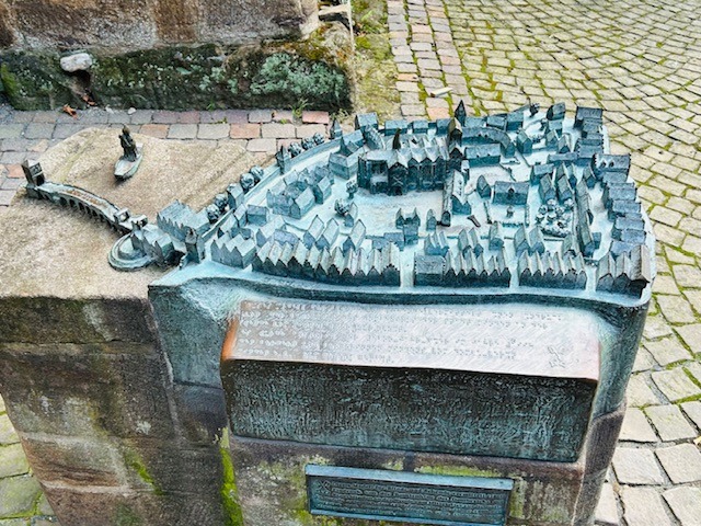 Nach weiteren kurzen Fotostopps fuhren wir bei immer besserem Wetter weiter nach Rinteln, wo wir uns in der Altstadt zunächst beinahe verloren aber dann doch wieder fanden. Dass wir dabei an einem Denkmal mit 3 Schweinen vorbei kamen, war nur Adelheid aufgefallen.