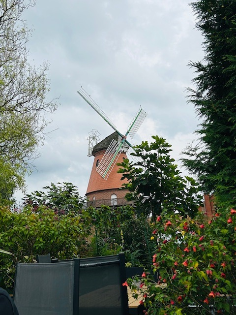 In Schinna machten wir noch einen kurzen Abstecher durch das Kloster bevor wir dann schon bei unserem Ziel, dem Mühlengasthof in Landesbergen ankamen. Dieser bietet für kleines Geld einen Biergarten, der ein wahres Blumenparadies ist und idyllischer nicht sein kann, gemütliche Zimmer mit Fliegengittern vor dem Fenstern und phantastisches Essen mit selbstgezüchteten Zutaten wie der eingelegten Teardrop Chili, von der wir noch nie etwas gehört hatten.