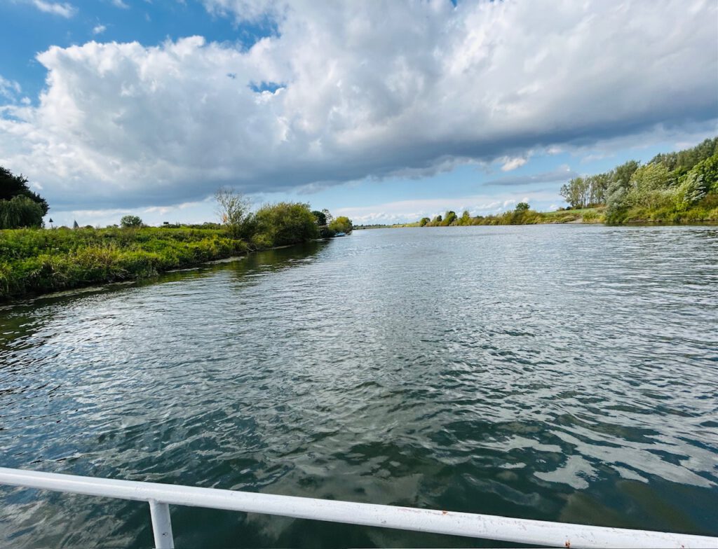 Nach einem letzten Wechsel mit der Fähre bei Schweringen fanden wir in der hol(ü) Bar noch ein schönen Platz für eine Einkehr bei mittlerweile wieder sonnigem Himmel.