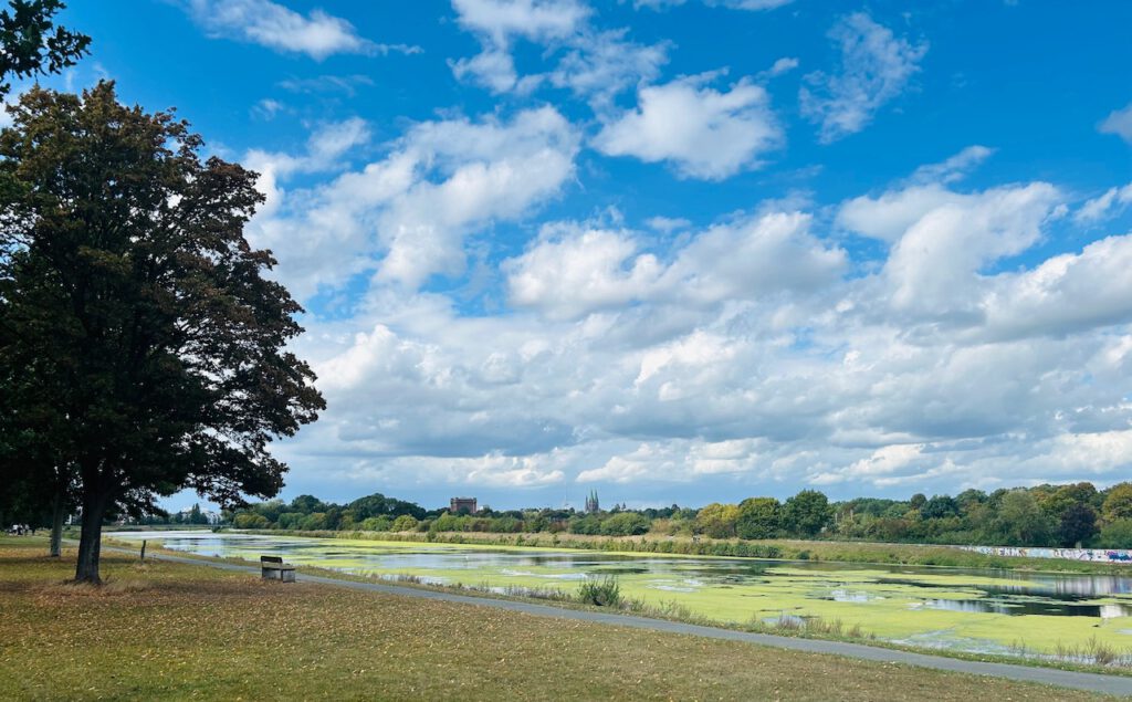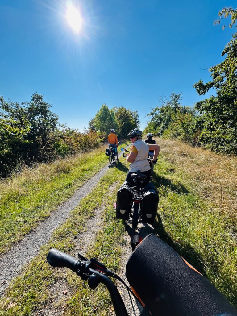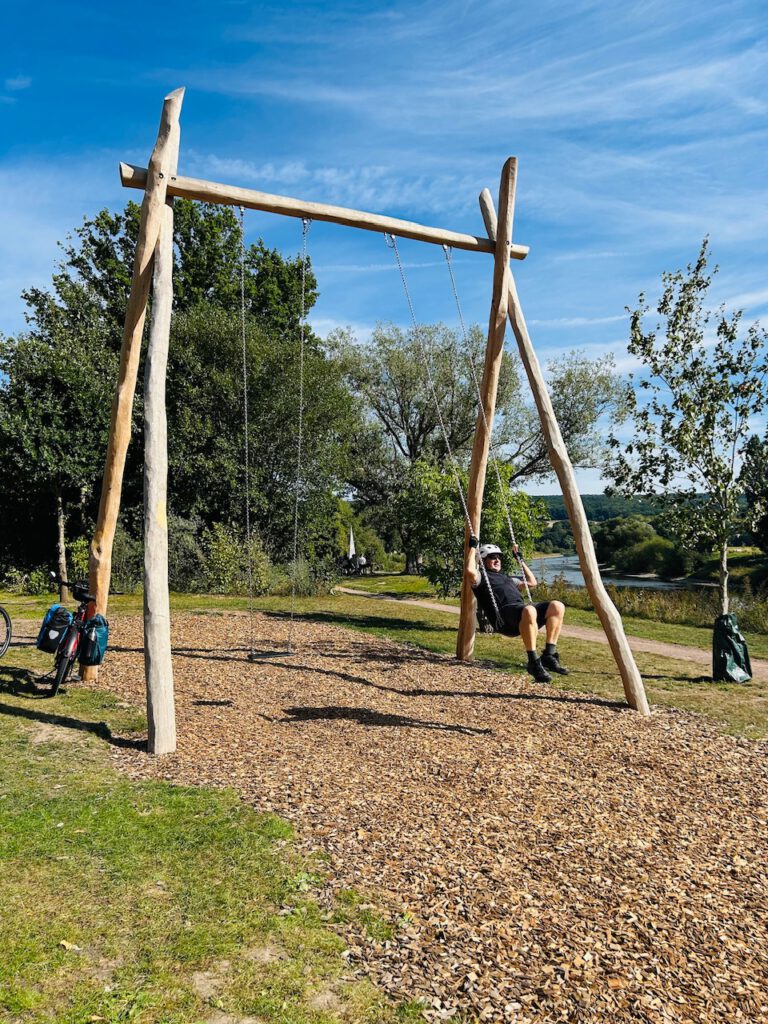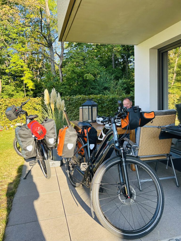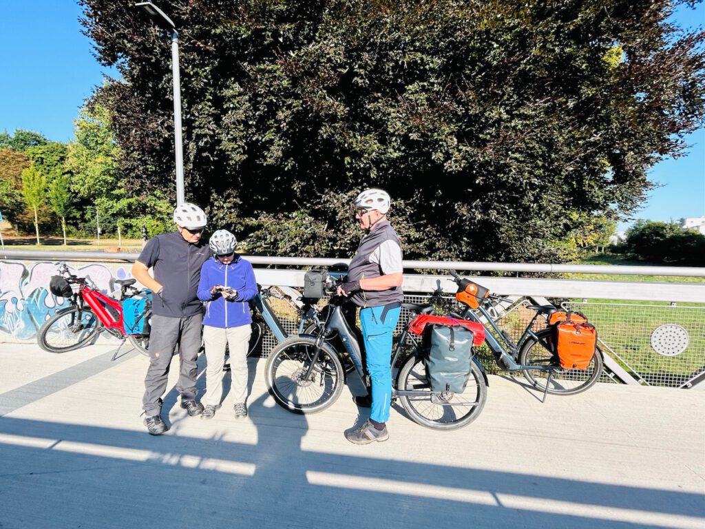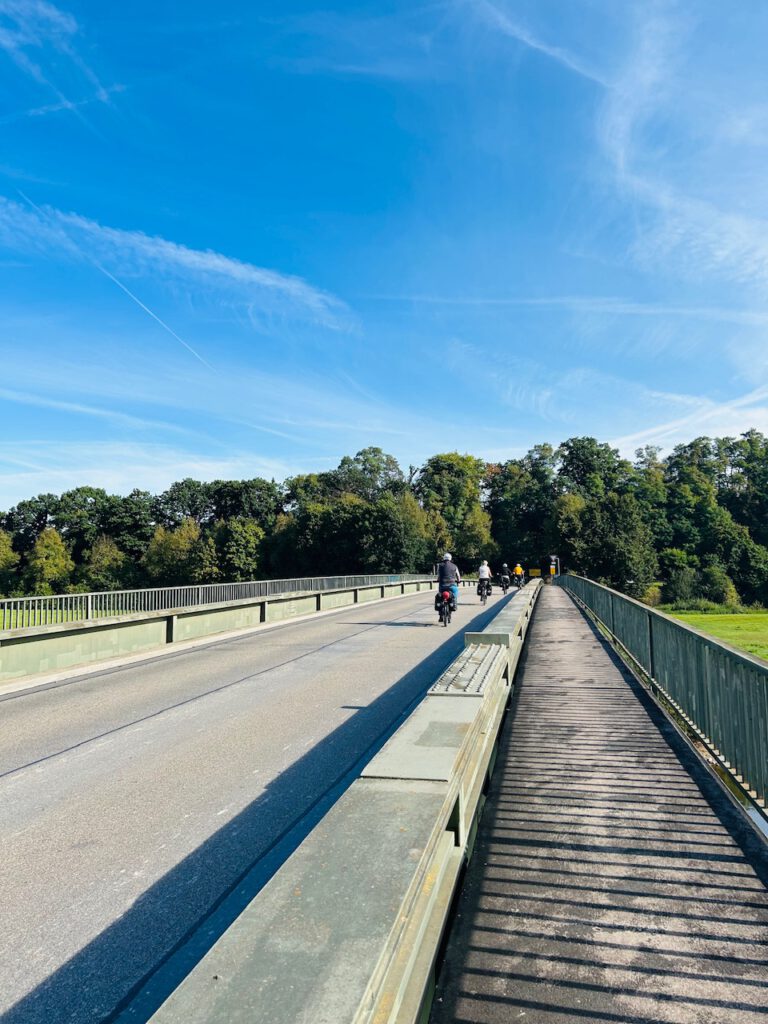 Bei strahlenden Sonnenschein waren wir früh wach, packten die Räder voll und hatten noch genügend Zeit für einen Kaffee auf der Terrasse, bevor wir zum ersten Treffpunkt an der Brücke über die Leine starteten, wo wir mit Andreas und Angelika verabredet waren. Die ersten Meter auf dem vollgepacktem Rad fühlten sich sehr ungewohnt und wackelig an, doch auf den hervorragenden Radwegen kamen wir gut und früher als geplant an.
