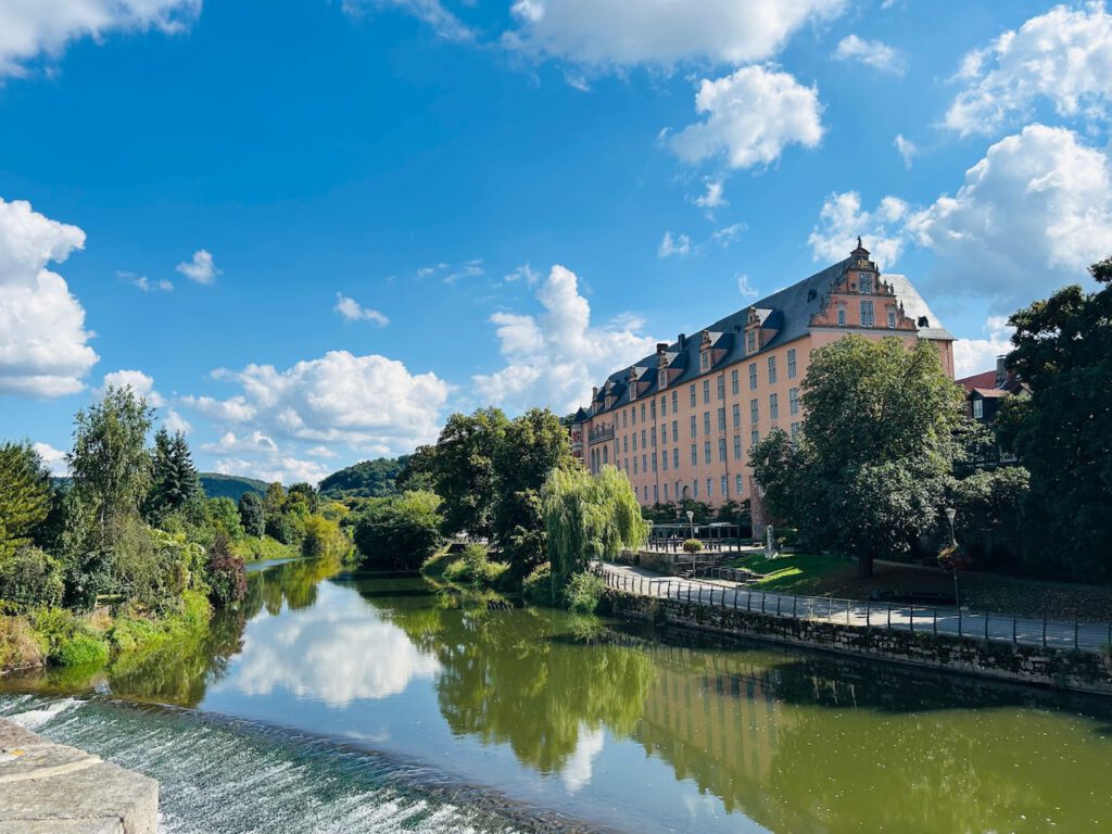Nach dem Frühstück fuhren wir erstmal vom Hotel über die Weserbrücke nach Holzminden. Dort mussten wir direkt am Ufer der Weser Halt für einen Fotostopp machen.