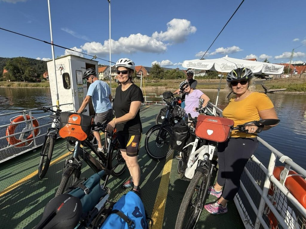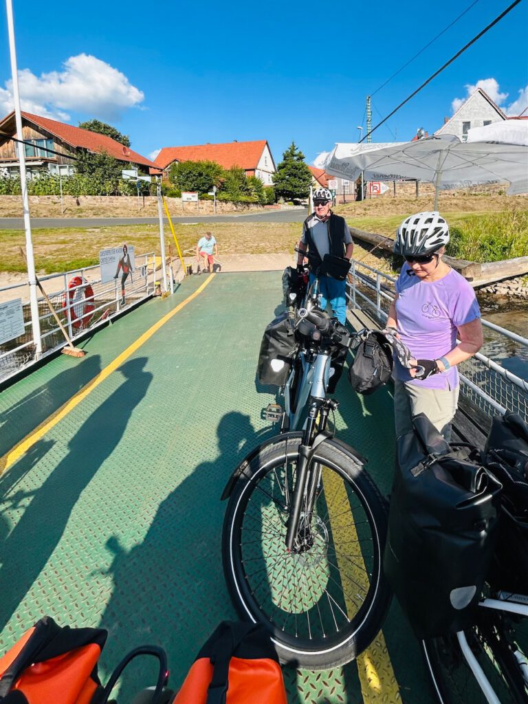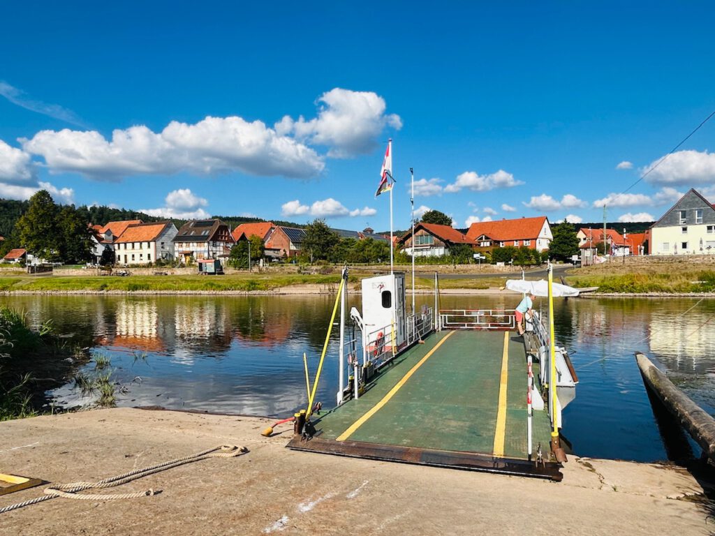 Danach setzten wir mit der Fähre in Oedelsheim auf die andere Weserseite über und fuhren 2 km zurück zu unserem ersten Hotel, dem Gasthaus zum Lindenwirt in Weißehütte.