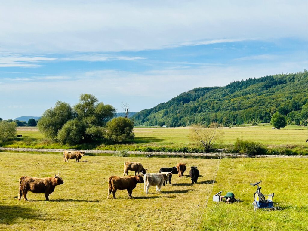 Kurz hinter Holzminden ließ uns eine Herde Rinder erneut anhalten. Von der Besitzerin erfuhren wir, dass das Kalb in der vergangen Nacht geboren wurde.
