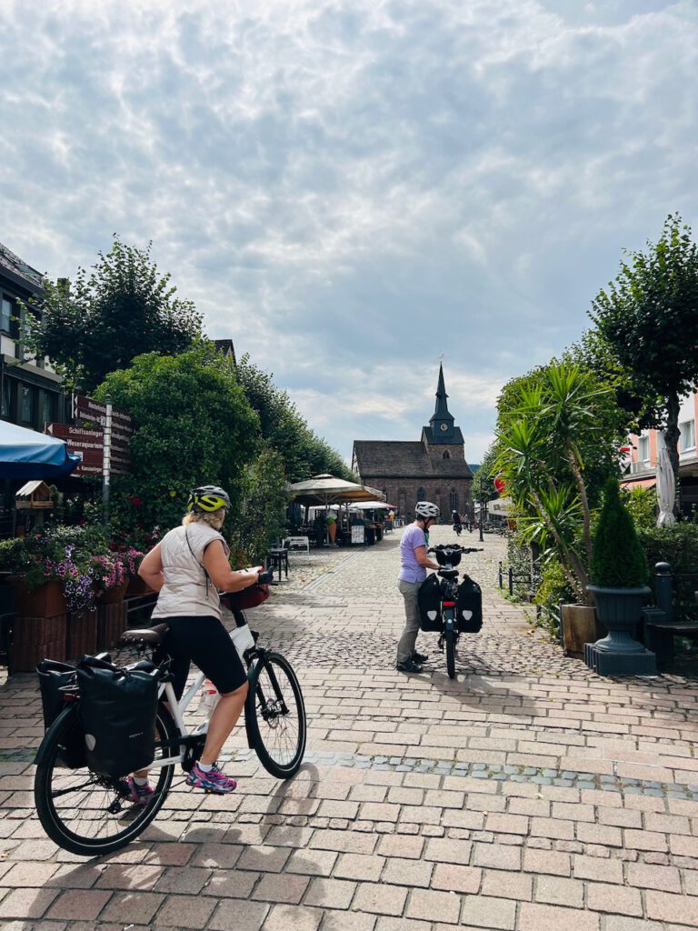 Leider war die Gastronomie an der Schleuse geschlossen, so dass wir nun auf dem Weg nach einer Alternative suchten. Der Biergarten im Schloss Petershagen ist nur am Wochenende geöffnet, aber wir fanden noch einen guten Bäcker, bei dem jeder etwas Leckeres fand.
