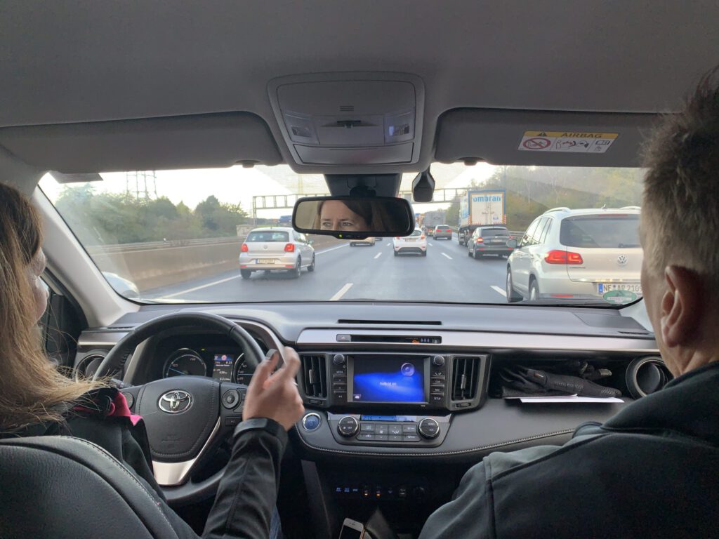 Sandra ist so lieb und bringt uns nach Düsseldorf.
